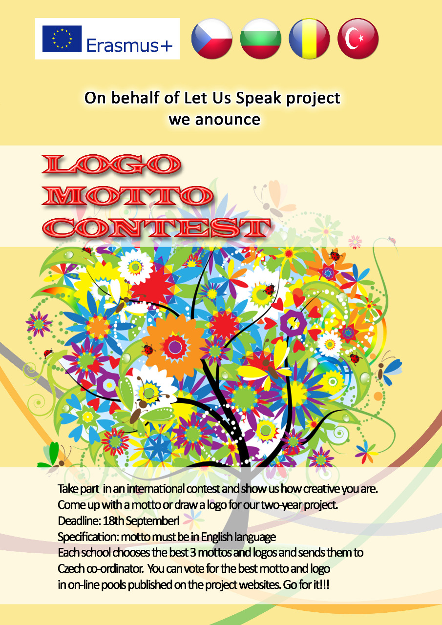 The very 1st project activity is here. Don´t hesitate and take part in the international contest and show us how creative you can be. Think up a project motto or create a project logo and we can promise you that your piece of art will be displayed everywhere during two years of our project. Don´t miss the chance and show your friends your skills. See the poster for the contest specification and deadline - here.